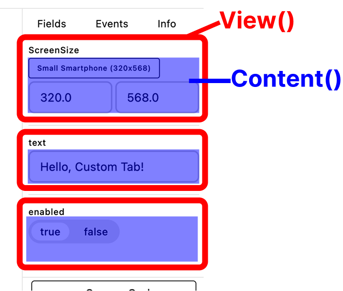 Content() メソッドは Field の編集 UI のメインコンテンツのみを定義しますが、View() メソッドでは Field のラベルを表示するヘッダーなどを含めた全ての UI を定義することができます。